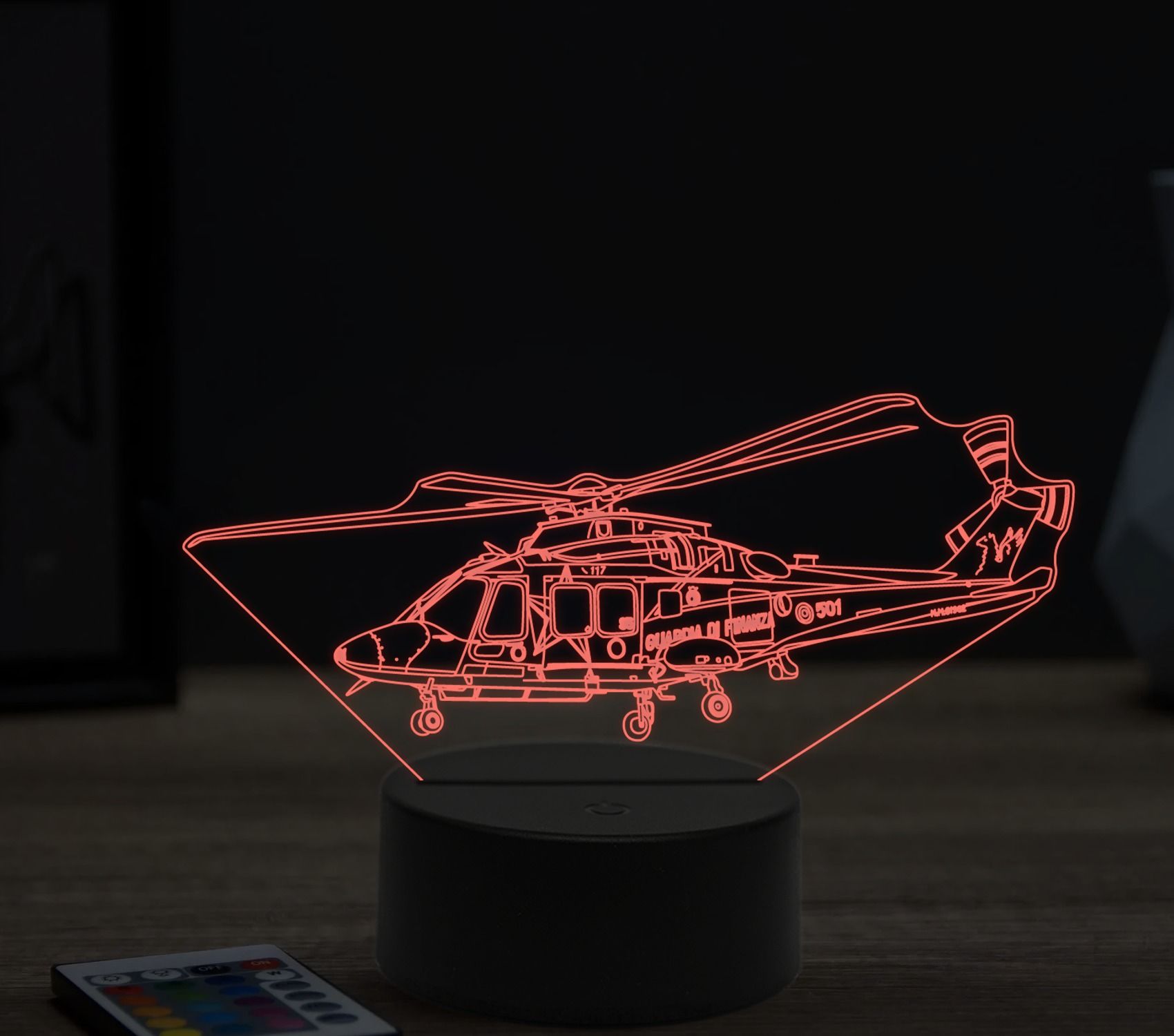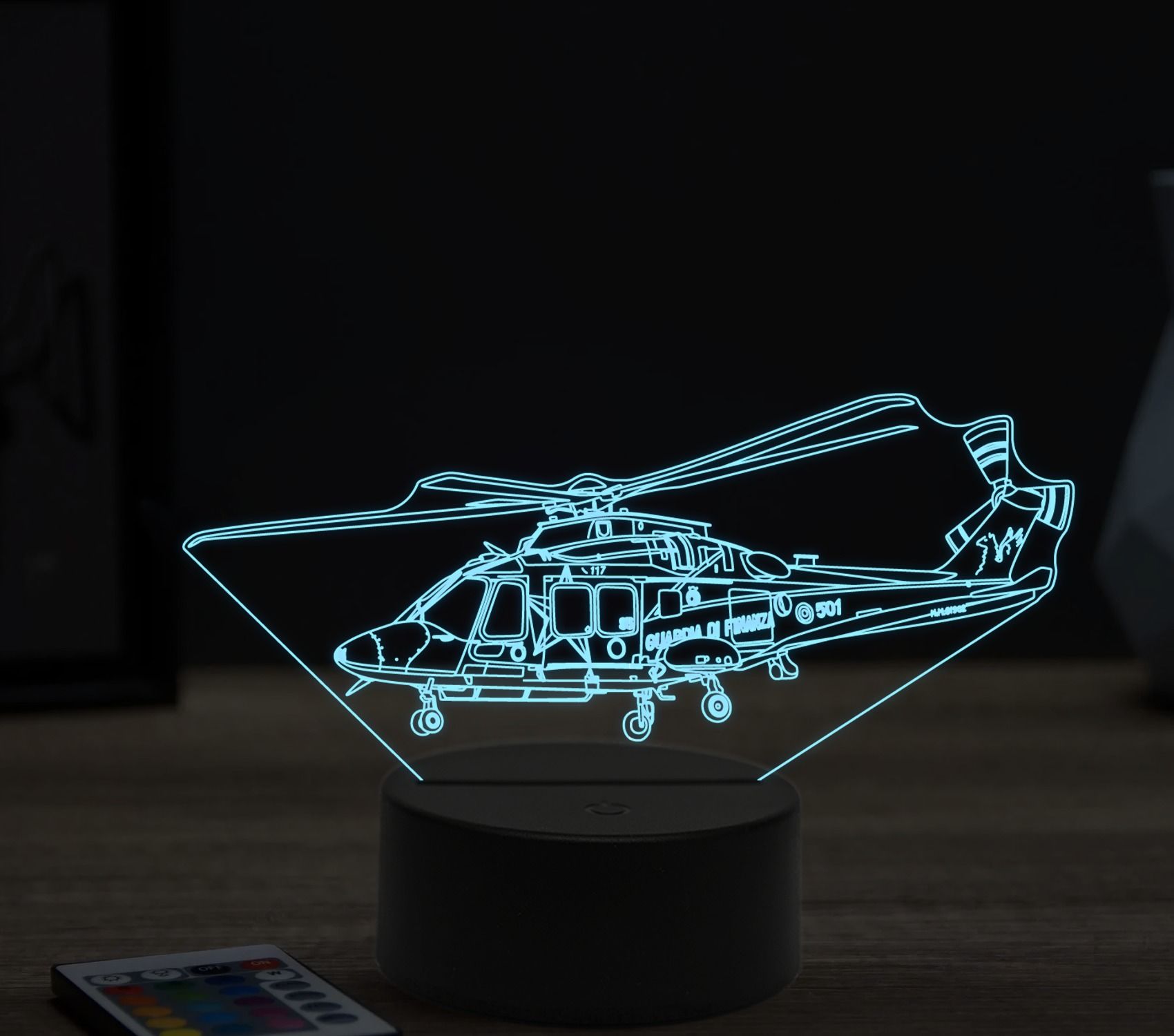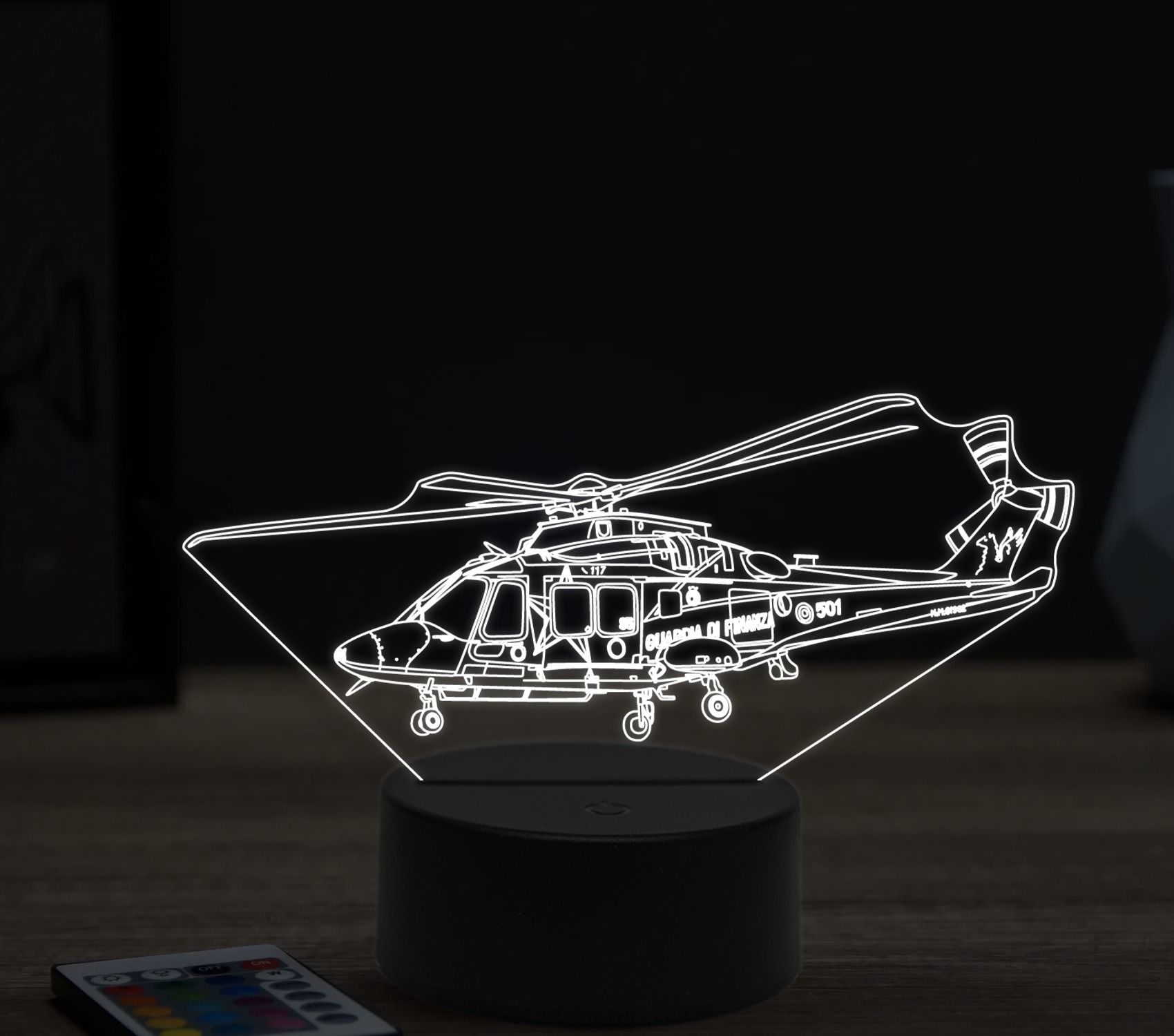 Úvod 3D LAMPY LIETADLÁBeling 3D lampa, Agusta Westland AW169 helicopter, 16 barevná, LV08